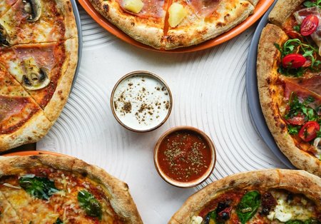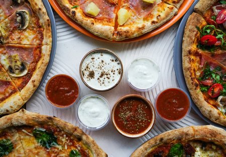 Idealny dla 8-10 osób - wybierz 6 sosów + 5 dużych pizz