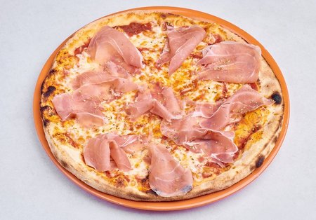 Sos pomidorowy mozzarella fior di latte, szynka crudo (parmeńska)