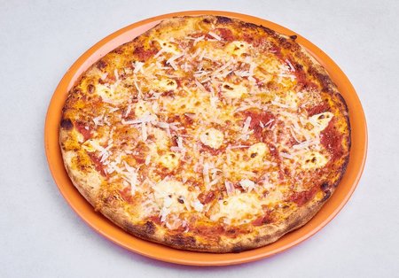 Sos pomidorowy, mozzarella fior di latte, gorgonzola, parmezan, ricotta