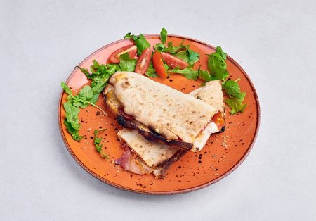 Mozzarella, szpinak, bakłażan, suszone pomidory, ser kozi
